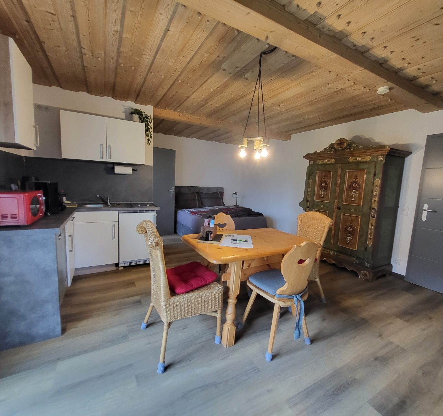 Fön, Gästekühlschrank, Geschirr vorhanden, Radio, Sitzgruppe, Wohnküche, Erdgeschoss, Bettwäsche inkl., Handtücher inkl., Mikrowelle, Nichtraucher, Terrasse am Zimmer, TV, Dusche, WC